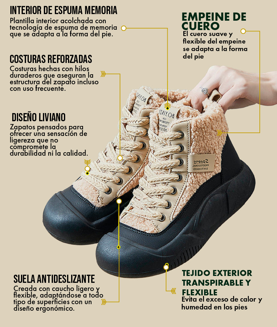 Nuestros botines no solo brindan calidez, sino que también elevan tu estilo personal, dándote la seguridad y tranquilidad que mereces. Cada paso será ligero, protegido y lleno de confianza