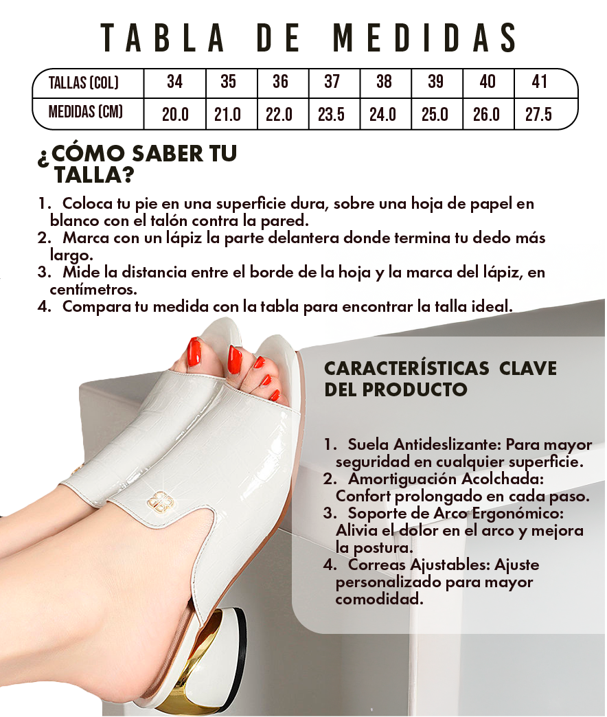 Nuestras sandalias combinan estilo y soporte, permitiéndote moverte con gracia y confianza sin sacrificar la comodidad